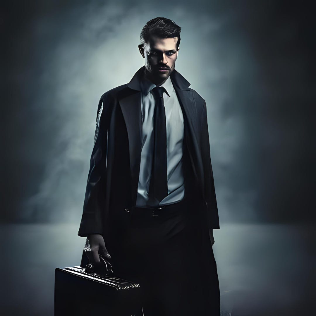 Alza el brazo y hace un gesto al camarero pidiendo la cuenta. Se levanta, coge su maletín negro y sin mediar palabra, deja en la barra del bar unas monedas para el camarero.